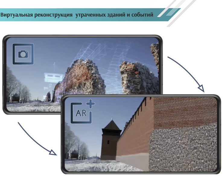 Первая цель – это знакомство туристов с конкретной достопримечательностью. Например по месту человек может воспользоваться сервисом дополненной реальности, чтобы увидеть, как выглядело здание (крепость) до разрушения или реконструкции, увидеть в чистом поле масштабное сражение прошлого, воспользоваться аудиогидом и пр. Турист может использовать навигацию в зависимости от его потребности в данный момент (где покушать, что ещё рядом посмотреть…) Причем навигация тоже может быть реализована как AR для усиления WOW эффекта.